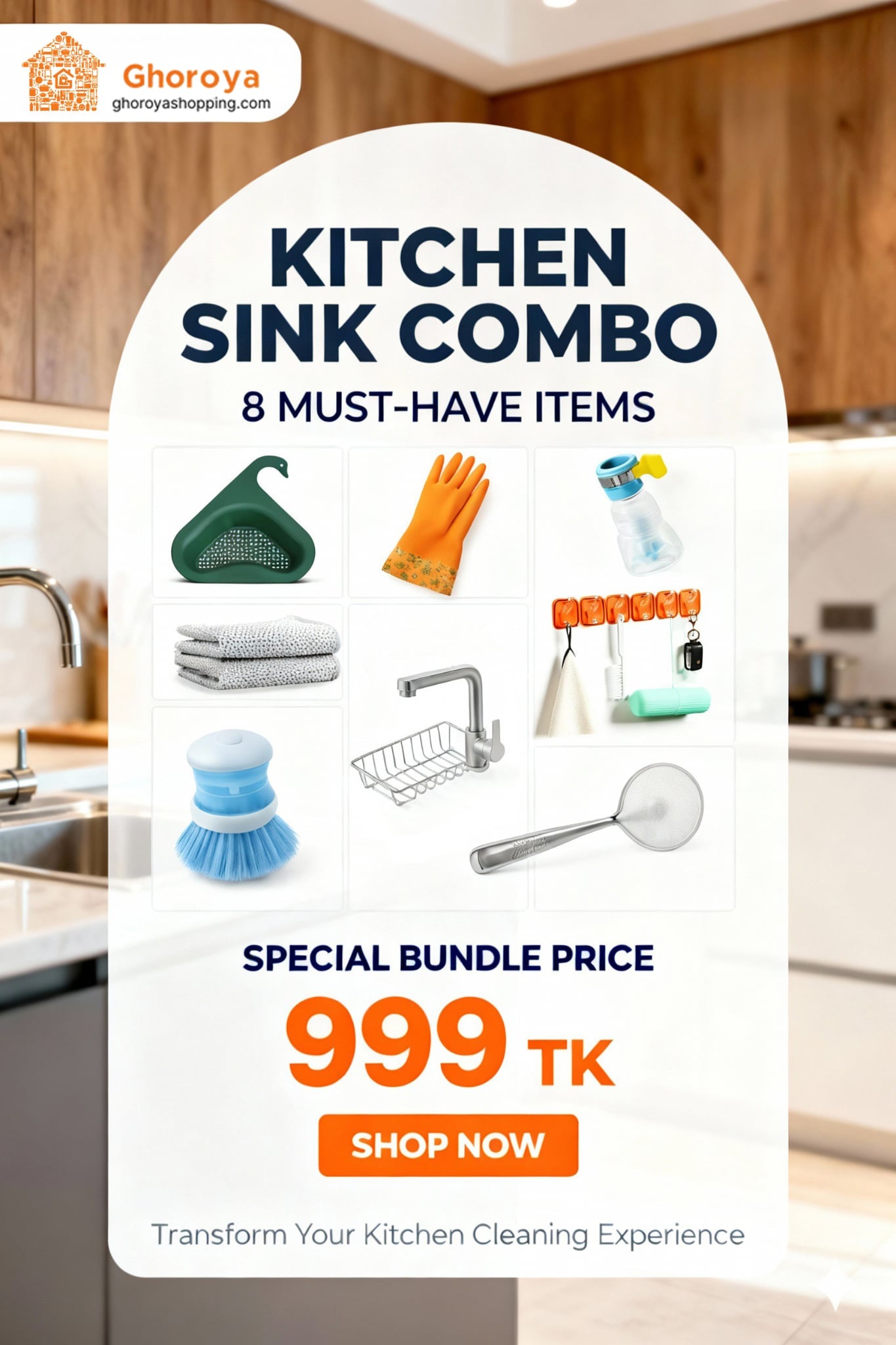 অগোছালো এবং অকার্যকর পরিষ্কারের সরঞ্জাম নিয়ে ক্লান্ত? আপনার রান্নাঘরকে উন্নত করতে এবং থালা-বাসন ধোয়ার কাজকে দ্রুত ও সহজ করতে নিয়ে এলাম সেরা কিচেন সিঙ্ক কম্বো বান্ডেল!
