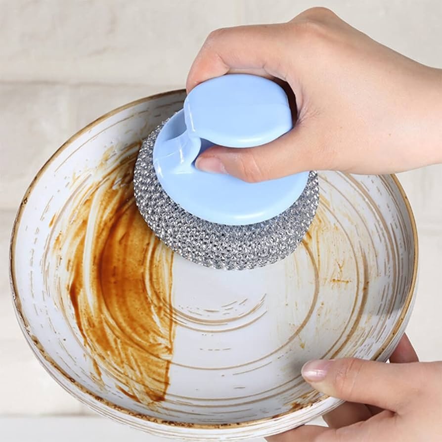 রান্নাঘর পরিষ্কার ব্রাশ অপসারণযোগ্য হ্যান্ডেল ডিশ ওয়াশার সহ গৃহস্থালী স্টেইনলেস স্টীল তারের বল - 2 পিসি.