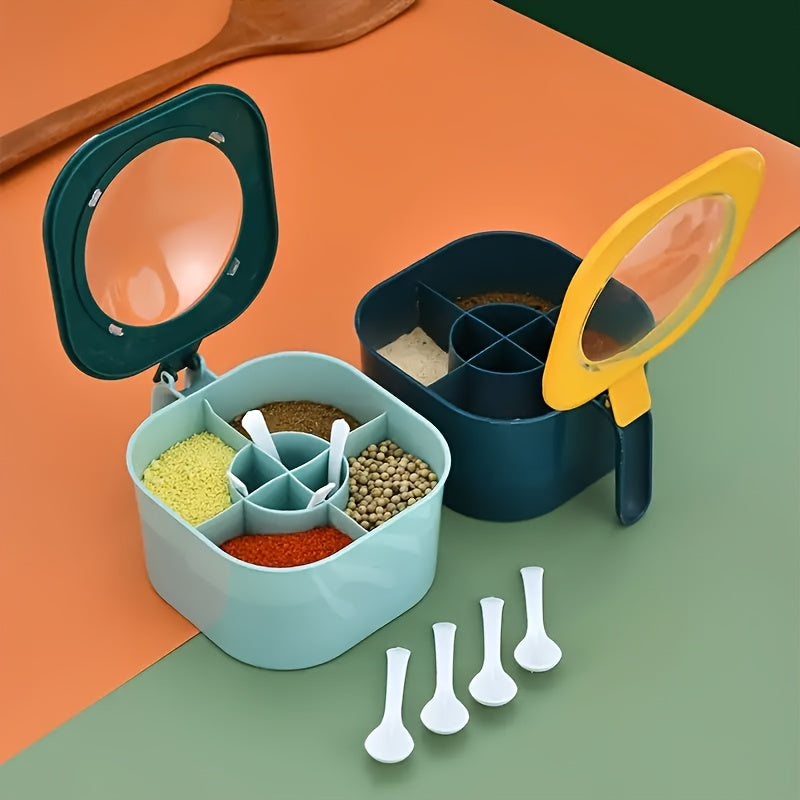 2 পিস চামচ মশলা জার মাল্টি কম্পার্টমেন্ট লবণ মরিচ মশলা জার পাত্র রান্নাঘরের আনুষাঙ্গিক মশলা পাত্রে 4 ইন 1 সিজনিং বক্স